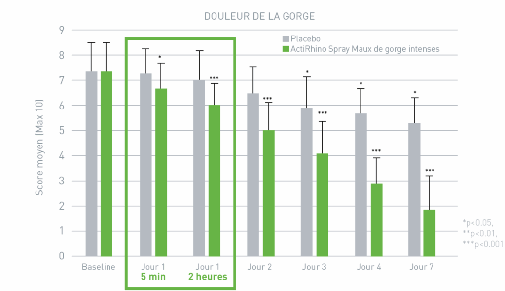 → Réduction des autres symptômes : gonflement, rougeur et charge bactérienne pharyngée dès le 2ème jour de traitement